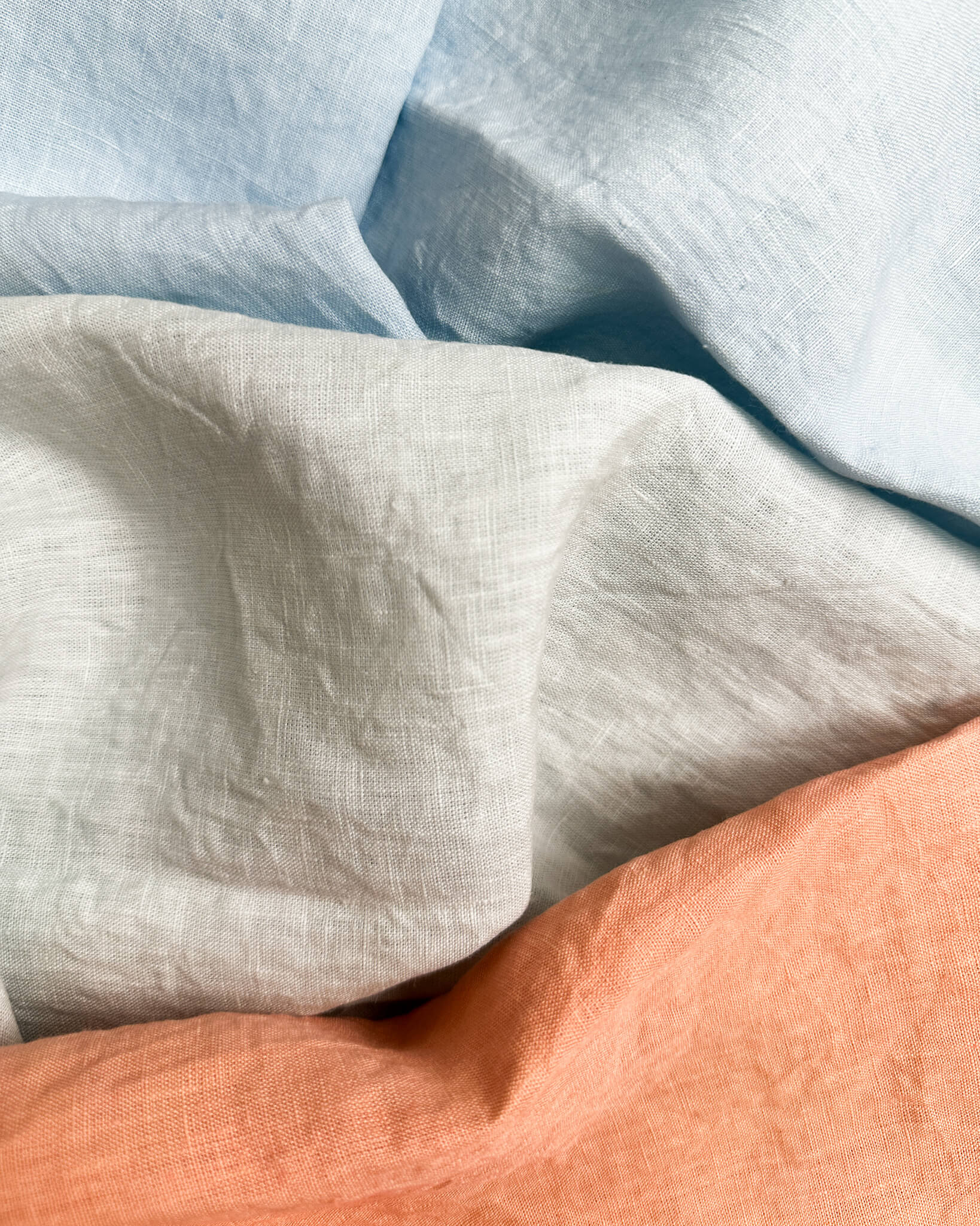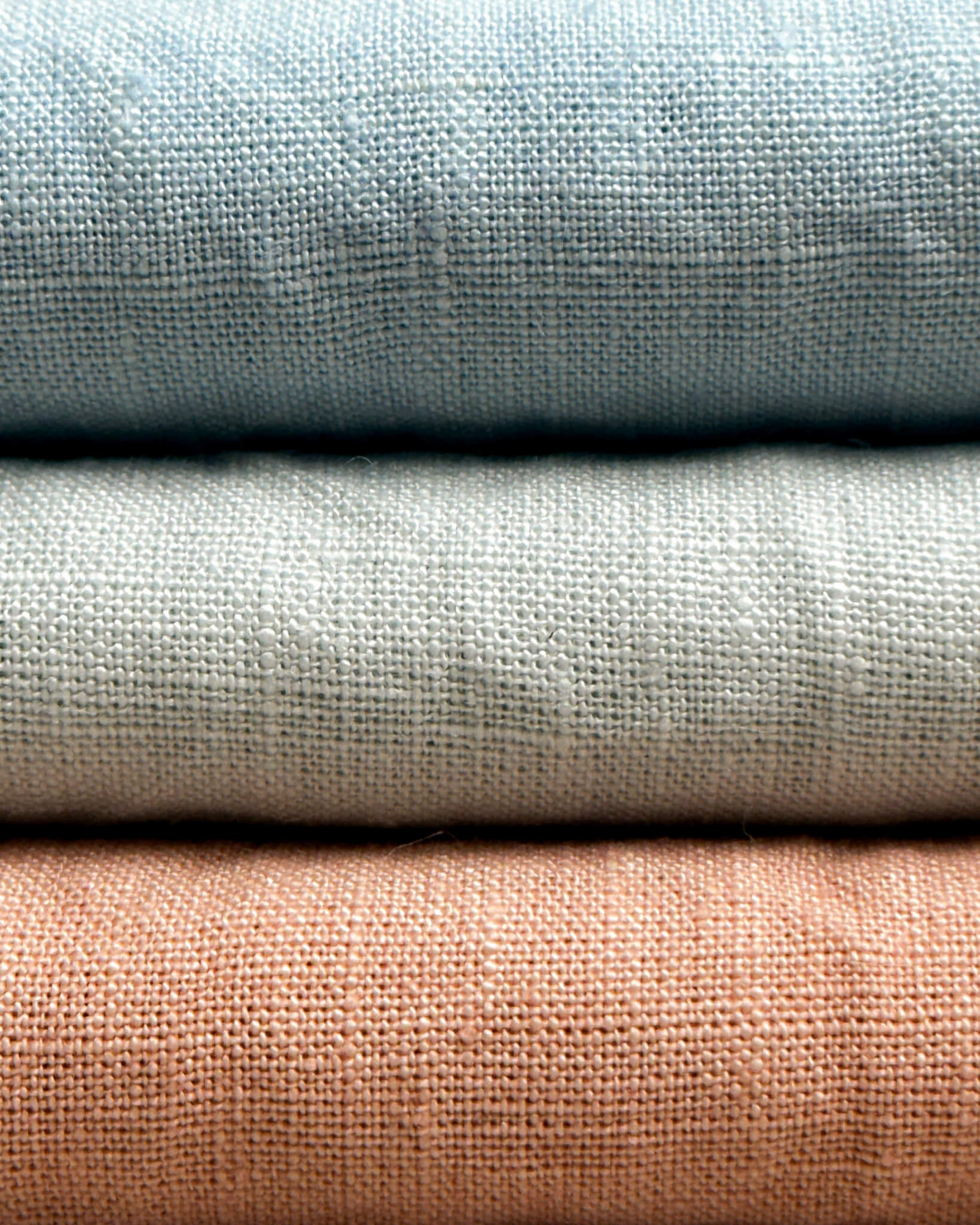 Por ser um tecido natural, pode apresentar pequenas variações na textura, são características próprias do linho, que reforçam sua autenticidade.