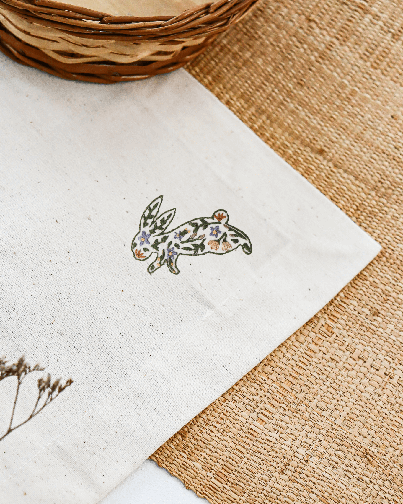 O Caminho de Mesa de Páscoa Coelhinhos Floridos foi criado para ocupar o centro da mesa com intenção, acolhendo quem chega e marcando a Páscoa como um tempo especial. Feito em linho puro, na cor cru, ele integra a coleção Trama Viva, que valoriza tecidos naturais, acabamento cuidadoso e o tempo do feito à mão. O caminho de mesa organiza o espaço, conduz o olhar e cria uma base afetiva para a composição da mesa.