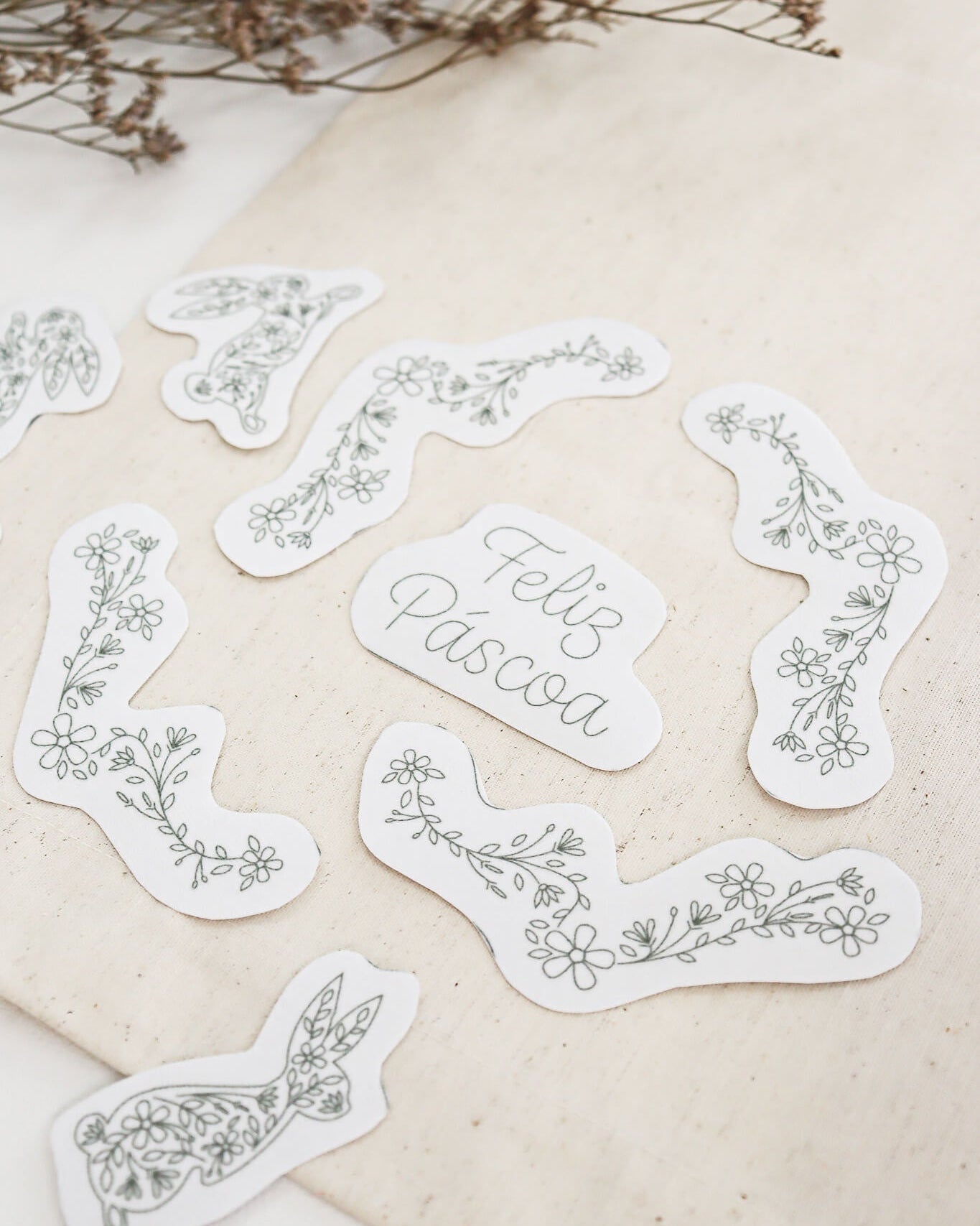 Este kit traz 4 coelhinhos floridos em diferentes posições, delicadamente desenhados com inspiração na leveza da primavera, cada um com aproximadamente 7 cm de altura, ideais para aplicações versáteis. Acompanha também 4 arabescos floridos e 1 entretela com a frase “Feliz Páscoa”, pensadas para complementar o bordado e deixar cada criação ainda mais especial. O e-book digital traz guia de cores, pontos e sugestões de aplicação, para inspirar você em cada etapa.