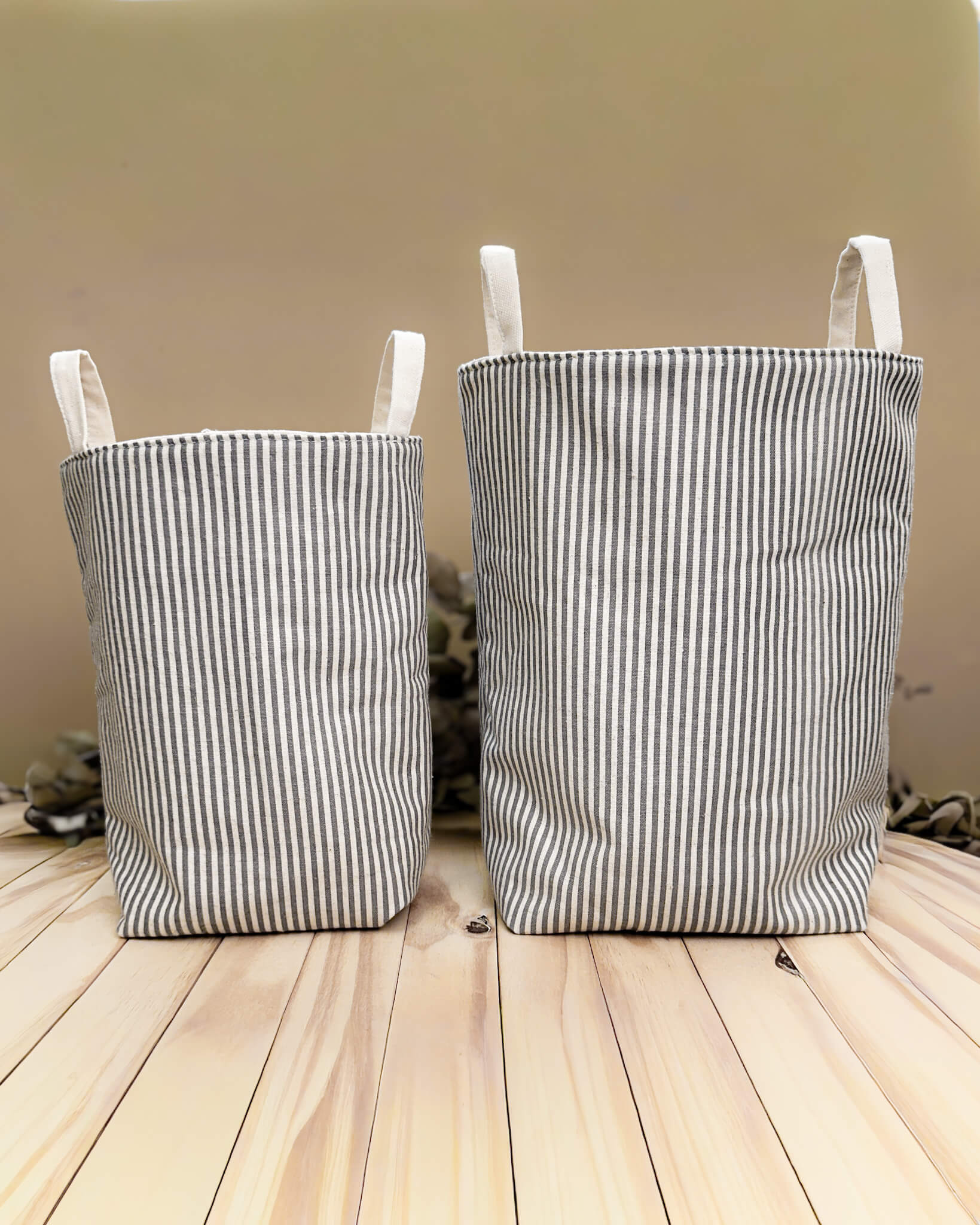 Versátil e pensado para se adaptar ao seu jeito de usar, a Cesta Inspira é dupla face e tem altura ajustável . Você escolhe como ela aparece: com o algodão kanvas cru ou com o tecido estampado para fora. Basta dobrar mais ou menos para definir a altura ideal e até esconder a alça, se preferir.