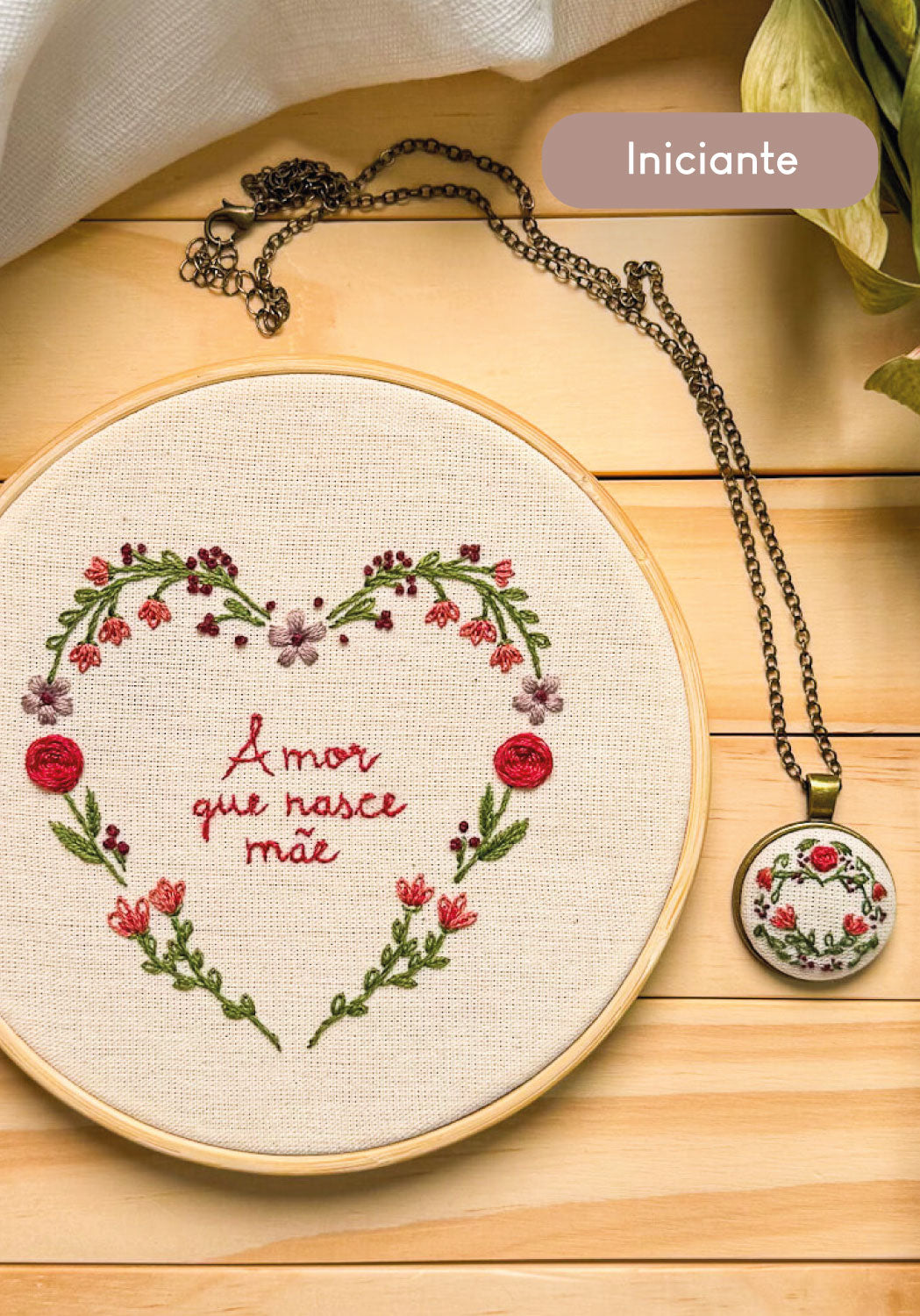 Ele é um gesto de amor que se transforma em bordado — e se multiplica. Você borda um coração cheio de significado para decorar, celebrar, relembrar. E, com o mesmo carinho, finaliza um pingente artesanal com um pedacinho desse bordado, para que a pessoa possa levar esse amor sempre com ela