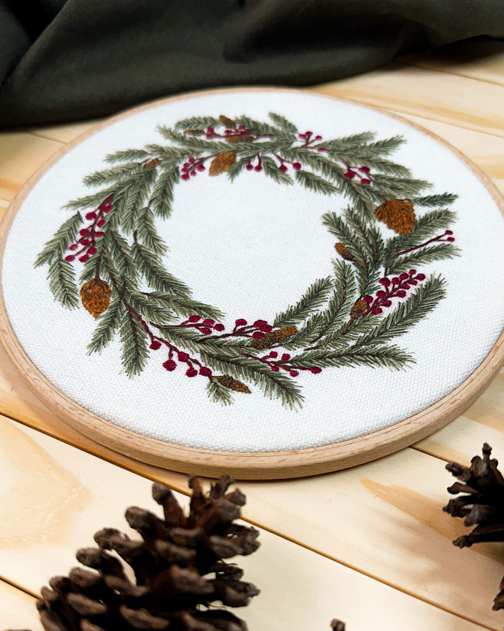 O Kit Quero Bordar Especial de Natal - Guirlanda de Natal é um convite para celebrar a tradição com linhas, transformando o ato de bordar em um ritual de calma e significado.