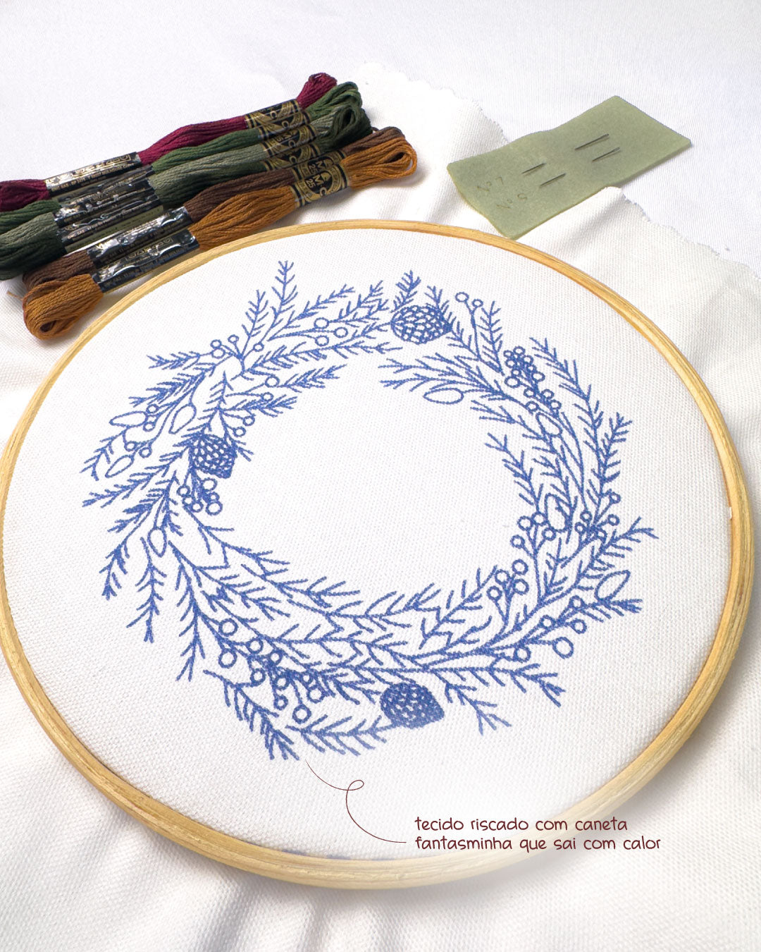 Kit Quero Bordar Guirlanda de Natal - Material completo + vídeo aula