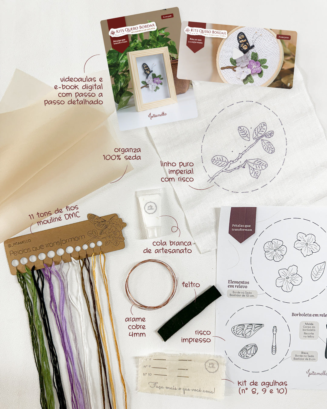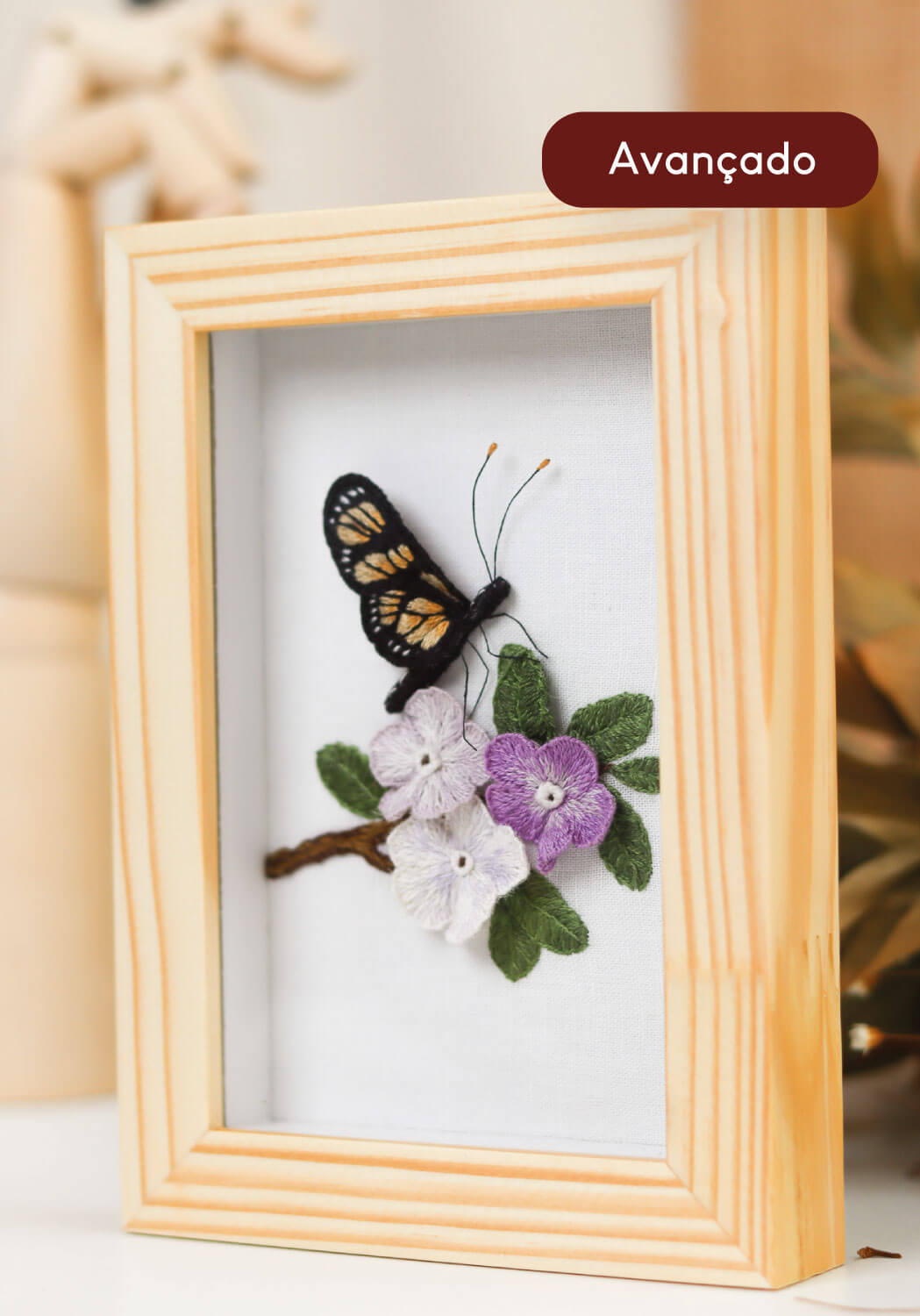 Kit Quero Bordar Manacá e Borboleta 3D - Material completo + vídeo aulas