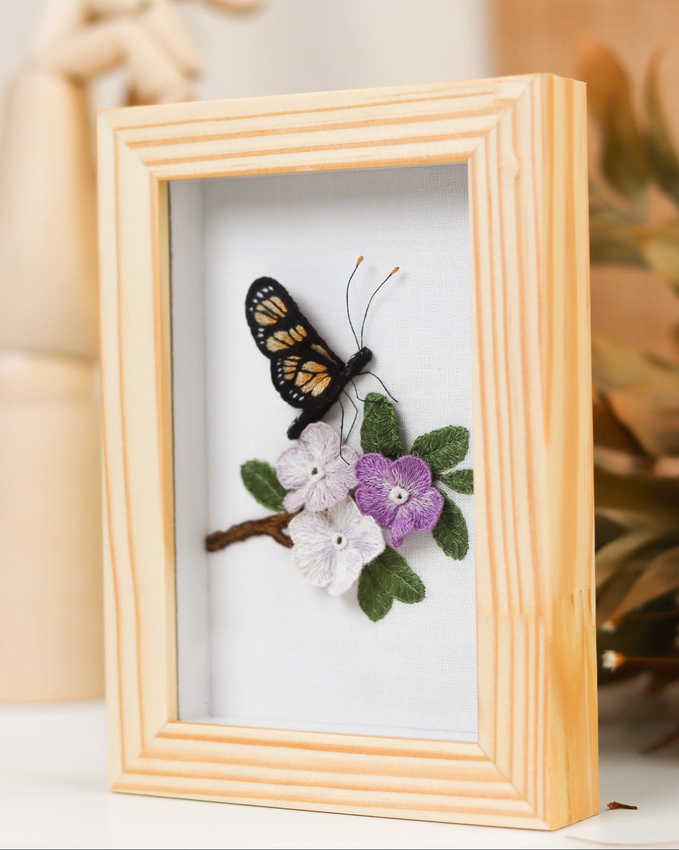 Com esse kit você vai criar soluções tridimensionais , explorando texturas, camadas e profundidades. Em seguida, dará vida a uma borboleta bordada em 3D , delicada e realista, para completar a composição.