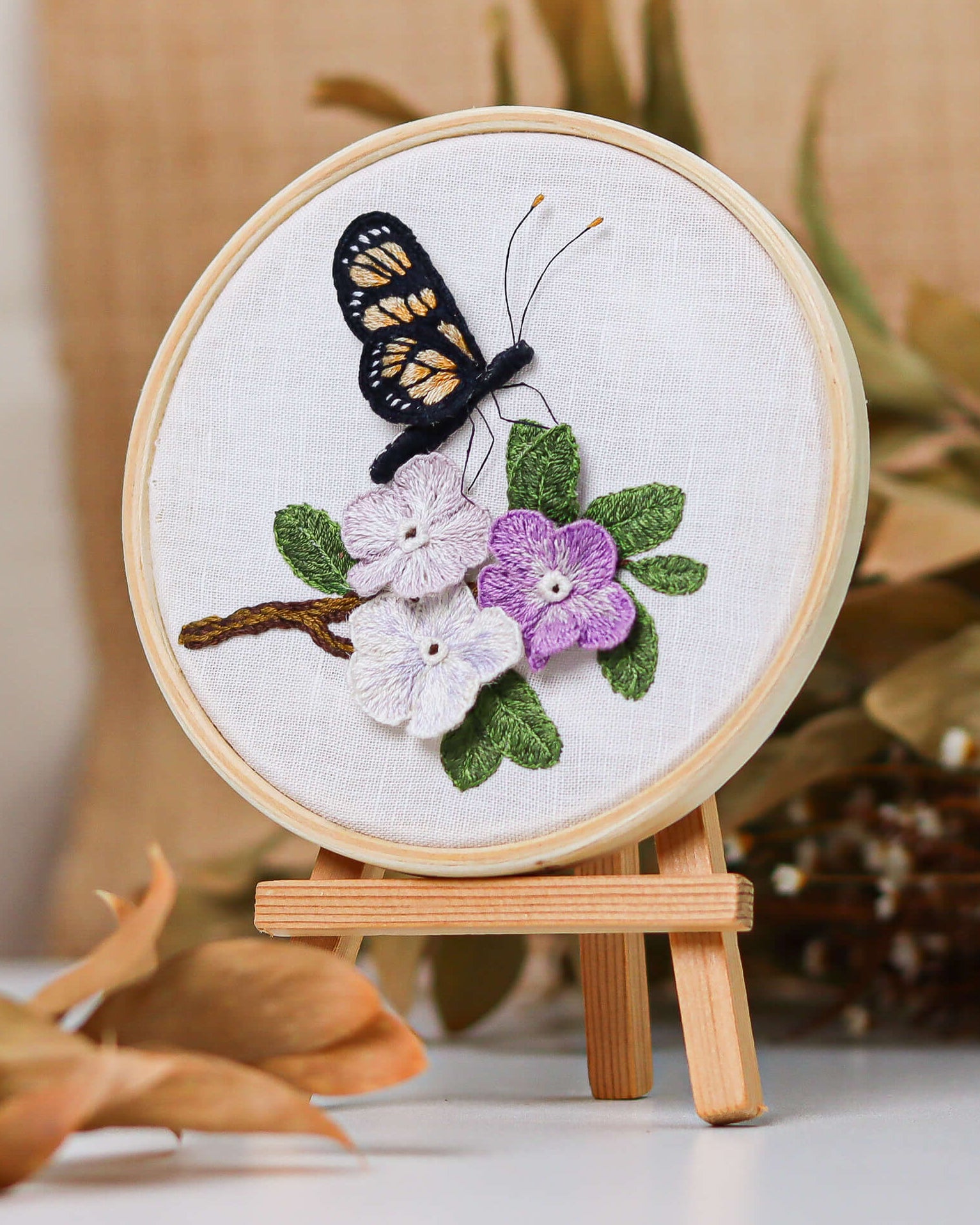 Um projeto de nível avançado , que explora o bordado 3D em detalhes delicados e cheios de vida.