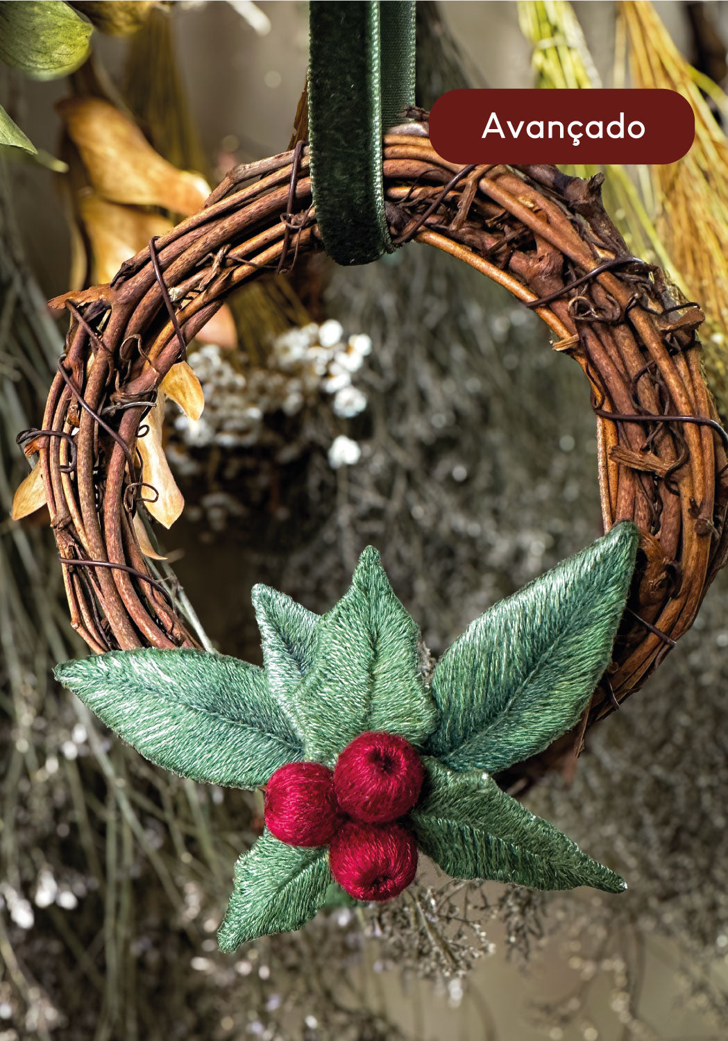 Um projeto de nível avançado , que explora o bordado 3D em detalhes delicados e cheios de vida. Cada ponto dá forma às folhas e frutinhas que se tornam uma decoração única, que é perfeita para enfeitar, presentear ou guardar como lembrança.
