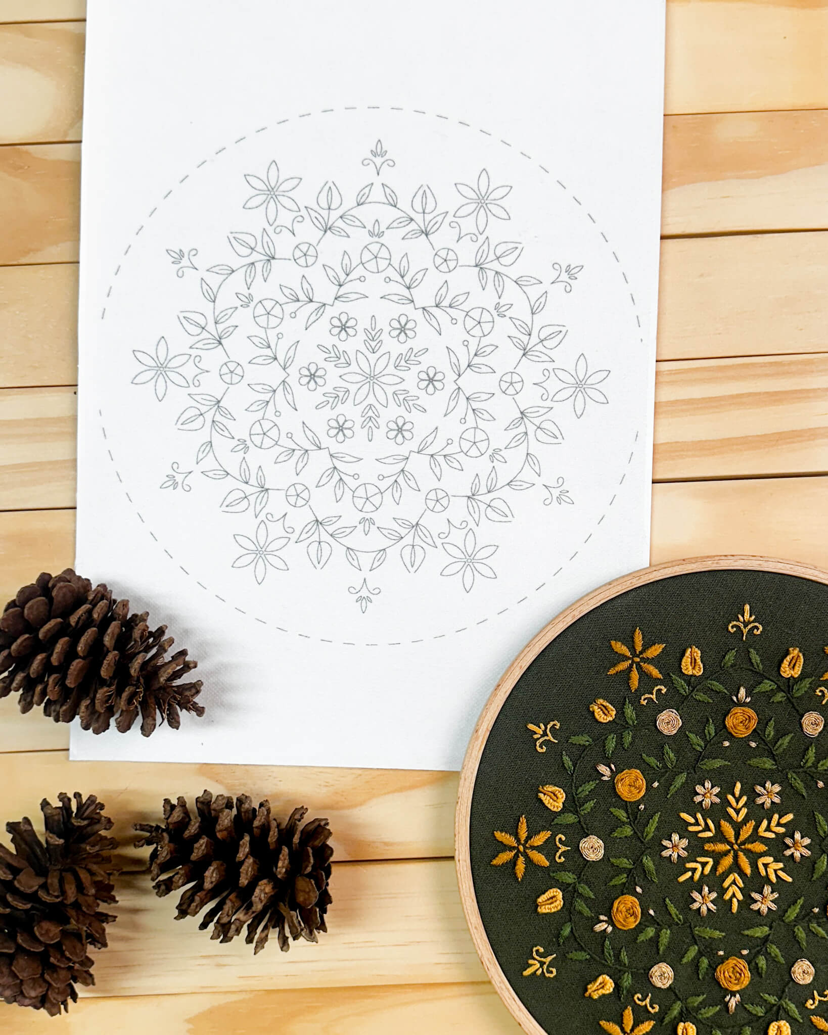 Um convite para bordar formas que unem flores e geometria: composições que encantam em qualquer tempo e florescem ainda mais no Natal.