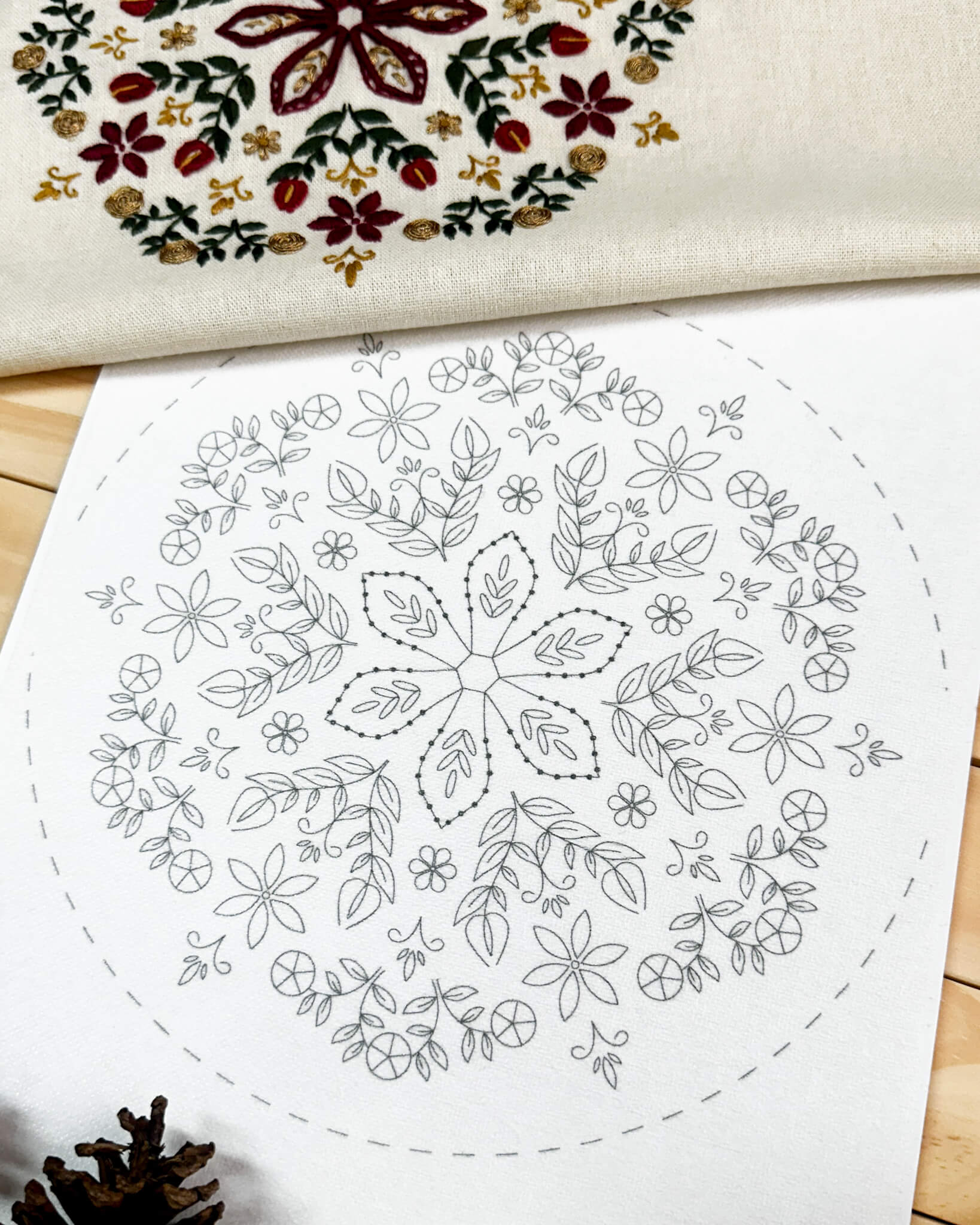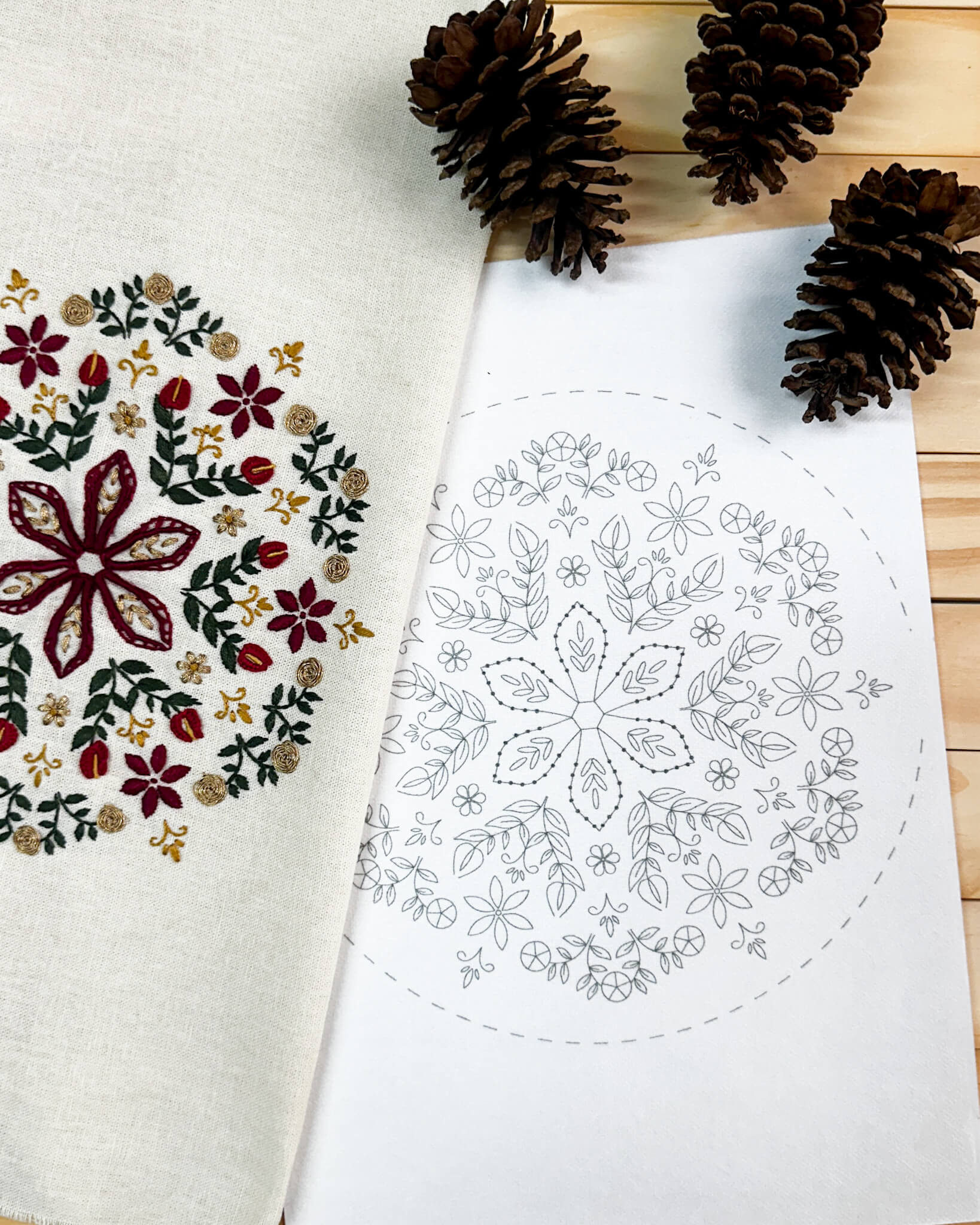 Um convite para bordar formas que unem flores e geometria: composições que encantam em qualquer tempo e florescem ainda mais no Natal.