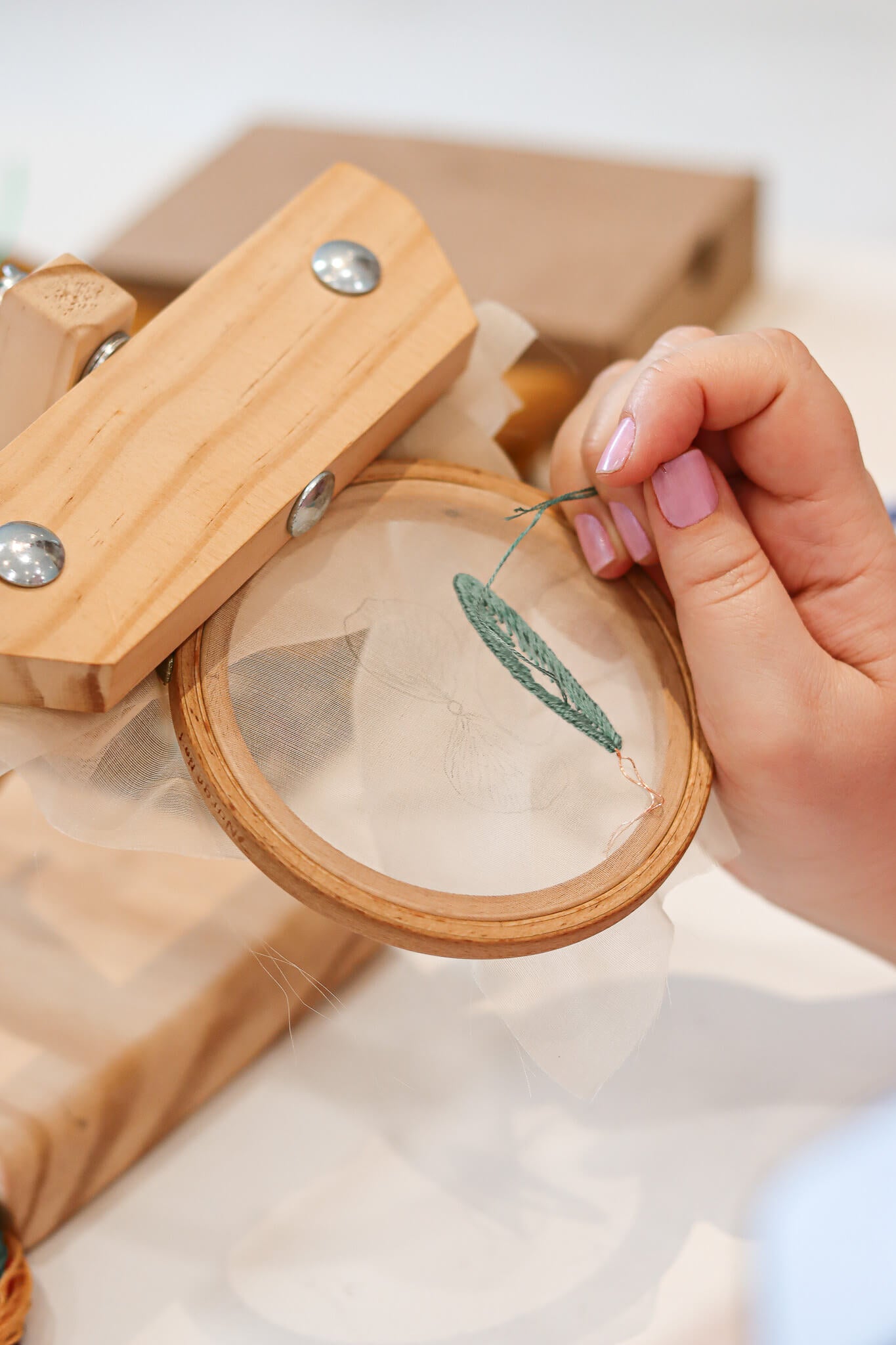 Seu toque crocante e firme permite criar efeitos de volume, camadas e transparência, ideais para o bordado 3D ou sobreposições sutis que dão vida e movimento às criações.