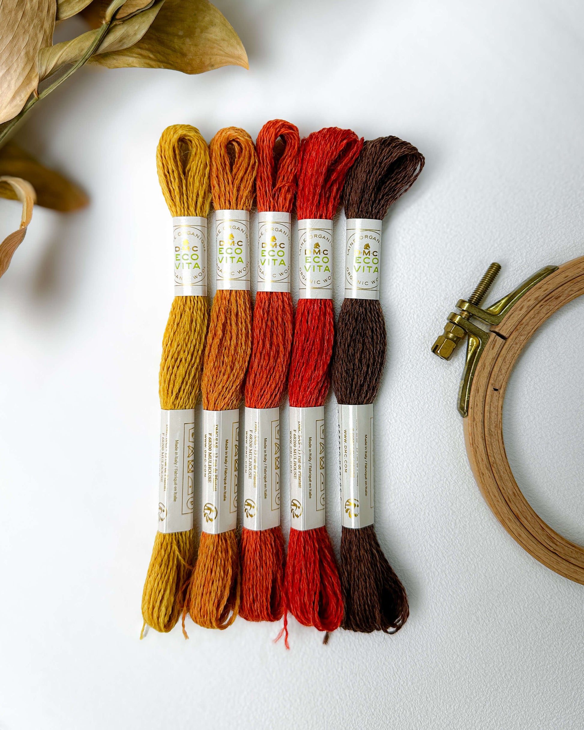 Reúne três variações de laranja, um amarelo intenso e um marrom amendoado, criando uma composição vibrante e acolhedora. As cores se misturam como o céu no fim do dia, perfeitas para bordados expressivos, florais vivos ou composições que tragam calor, alegria e movimento ao seu trabalho manual.